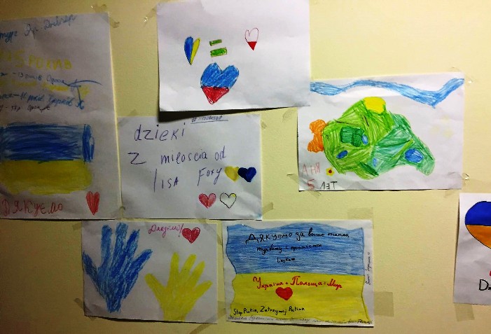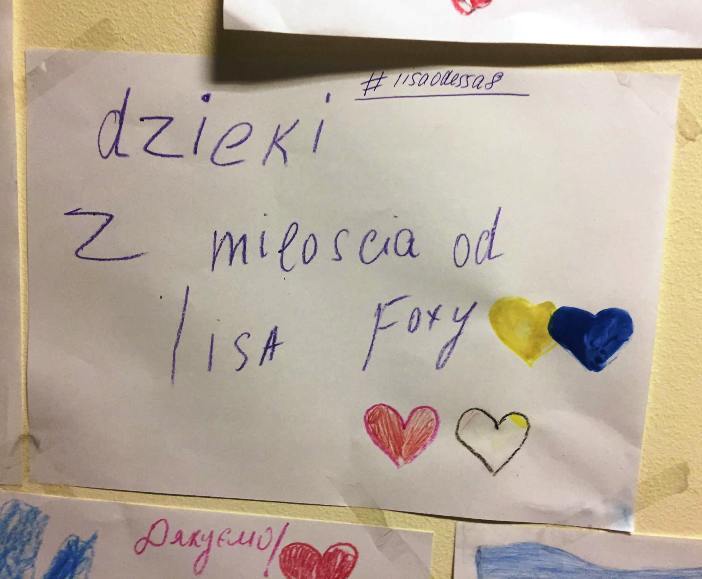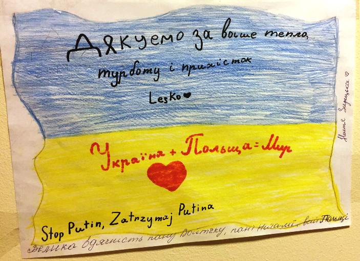 Jedna z kart z podziękowaniami, przygotowana przez ukraińskie dzieci przebywające w noclegowni.