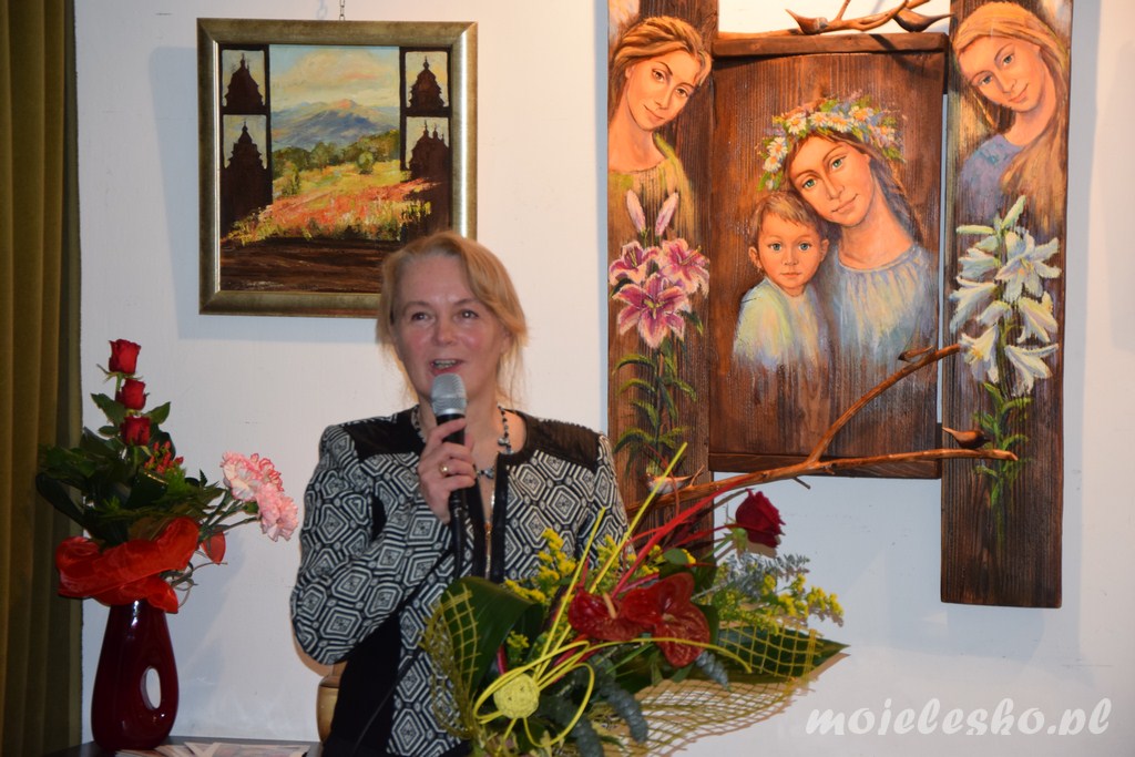 W piątek, 18 marca, w małej galerii BDK Lesko odbył się wernisaż wystawy malarstwa Jolanty Kordyaczny. Na wszystkich gości spotkania "czekały"... anioły - te patrzące z desek, te malowane przez panią Jolantę na płótnie i te "papierowe". Zachwycały również pejzaże i konie - wszystko w pięknych barwach i pełne klimatu.